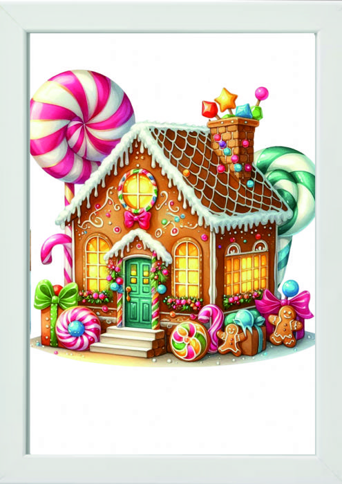 Se encuentra en > ILUSTRACIONES > CUADRO INFANTIL CASITAS CON CARAMELO